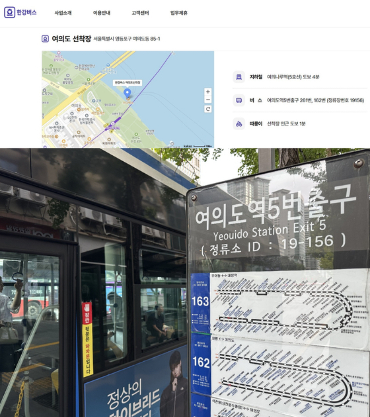 • 각 선착장(마곡, 망원, 여의도, 압구정, 옥수, 뚝섬, 잠실)엔 버스, 지하철, 따릉이 등 교통 수단 연계가 있음