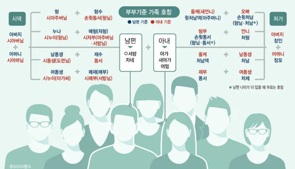 실제 가족 호칭엔 성별과 나이에 따라 불균형적인 용어가 많습니다. 부부가 상대방의 동생을 부르는 호칭이 대표적입니다.