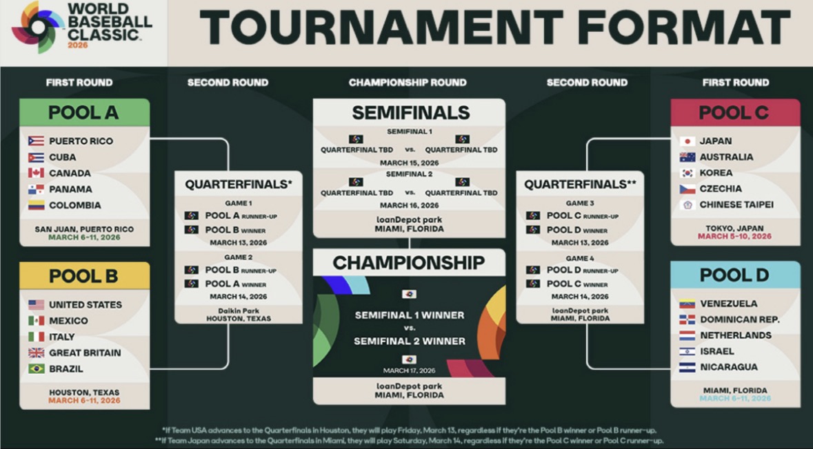 당시 WBC가 대회 직전 배포한 대진표를 보면 일본이 8강에 진출할 경우 B조 순위에 상관없이 도쿄돔에서 열리는 8강전 2번째 경기(게임2, 16일)를 하도록 돼 있었다. 미국도 8강에 올라가면, C조 순위와 관계없이 마이애미에서 열리는 8강전 2번째 경기(게임4, 19일)를 치른다고 규정을 달아놨다.