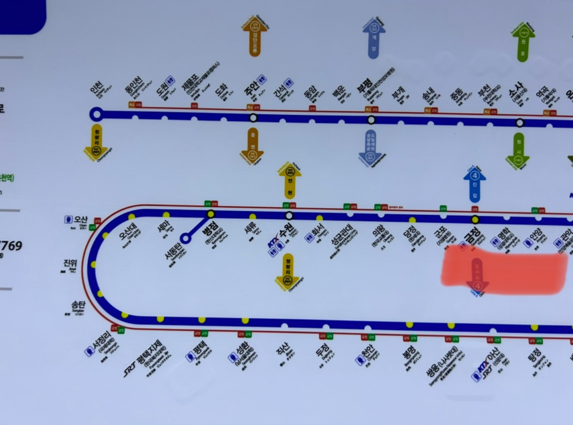 (‘금정’, ‘명학’에는 개찰구 안에 화장실이 있다.)