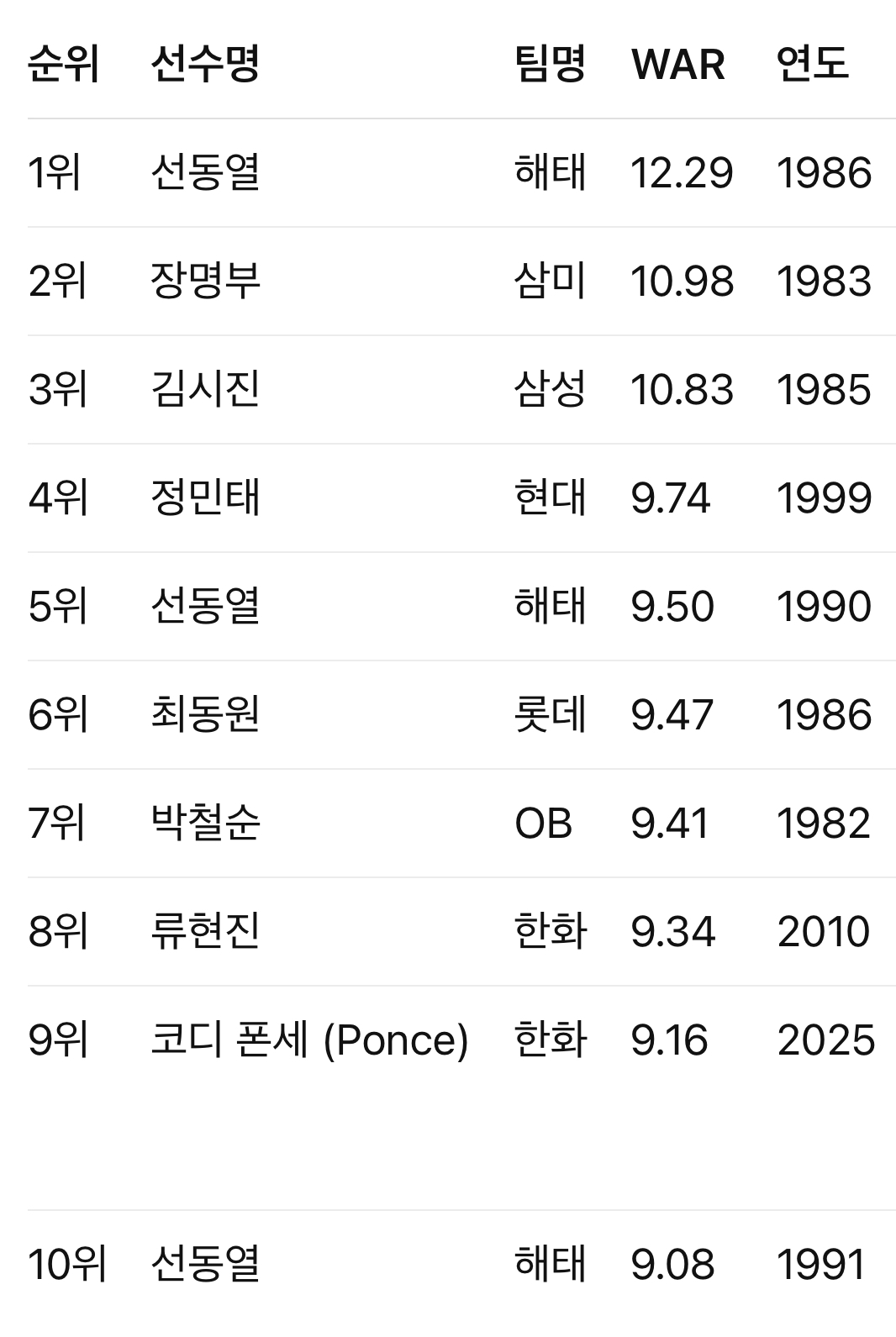 • WAR만으로 모든 가치를 측정할 수 없음 (팀워크, 클러치 능력 등 비정량 요소 제외)
